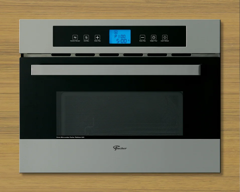 O Forno Micro-ondas Fischer Platinium Grill de Embutir 35L possui alto desempenho em um layout sofisticado. O painel touch screen emprega fácil controle de funcionamento. Moderno, o produto permite o aquecimento em cinco níveis de potência e o descongelamento dos alimentos, possui função auto menu, função cozimento combinado e função dourador. Seu sistema de cozimento flat plate permite o uso de pratos maiores, pois o aquecimento não depende de girar o prato. Ainda possui trava de segurança e é certificado pelo INMETRO (portaria 371 e 174).
